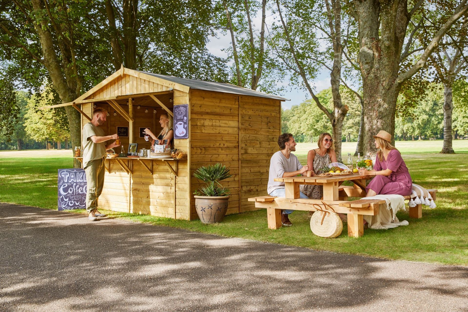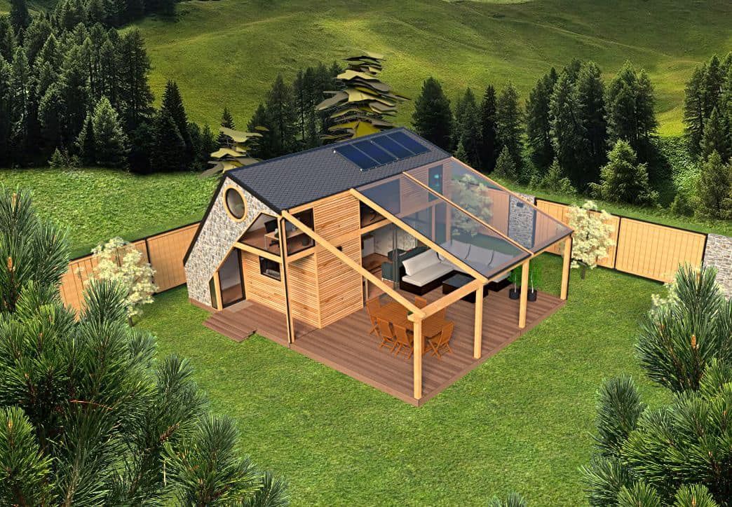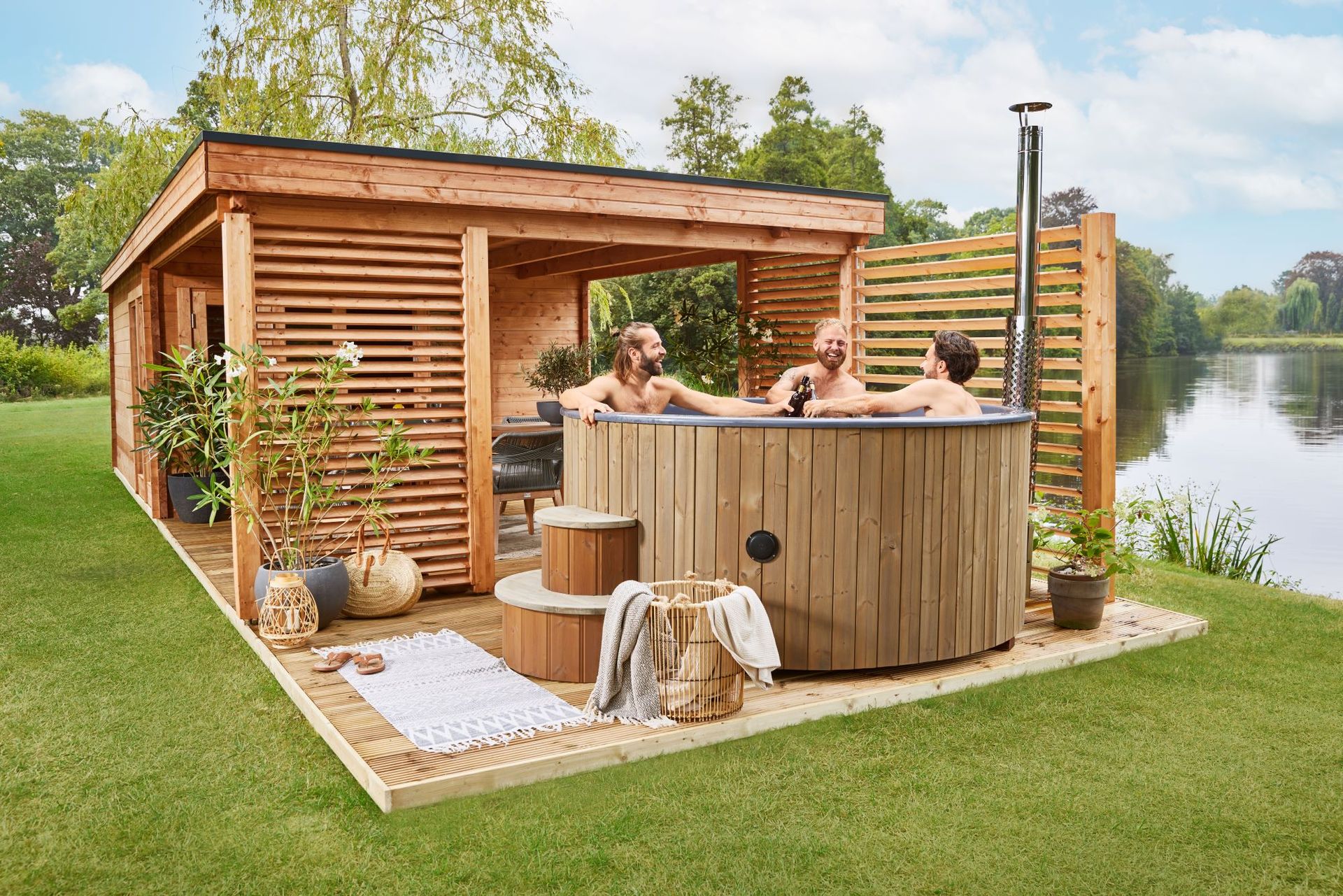 Log cabins outdoor accommodation garden houses artificial grass paving glass walls garden furniture wellness